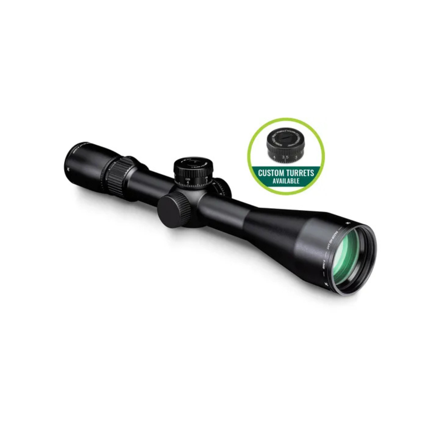 First Focal Plane Reticle | A first focal plane reticle is located within the riflescope near the windage and elevation turrets. The scale of reticle remains in proportion to the zoomed image. Consistent subtensions allow accurate holdover and ranging at all magnifications. The reticle's size will appear larger at high magnifications and smaller at low magnification. |